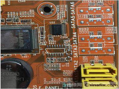 測(cè)開(kāi)機(jī)針3.3V正常,復(fù)位針1.5V(待機(jī)些主板為1.5V,開(kāi)機(jī)后為3.3V)正常。