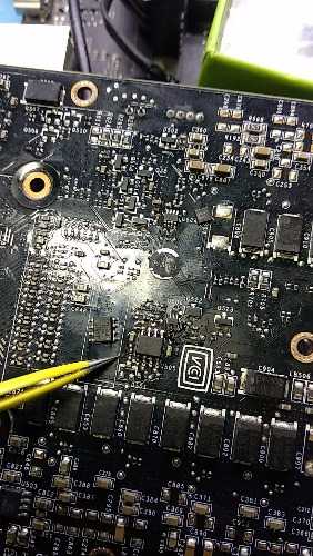 維修方法是:先測(cè)量GPU 顯存 PCI E供電電感對(duì)地值都在正常范圍后再去更換那兩個(gè)元件最好。SLI橋驅(qū)動(dòng)芯片原型號(hào)是ISL6545