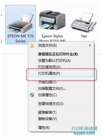 2.2 右鍵點(diǎn)擊打印機(jī)圖標(biāo)選擇“打印機(jī)屬性”,如圖(6);