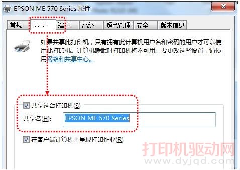 2.3 點(diǎn)擊“共享”選項(xiàng)卡,將“共享這臺打印機(jī)”打?qū),共享名可以自行修改,如圖(7);