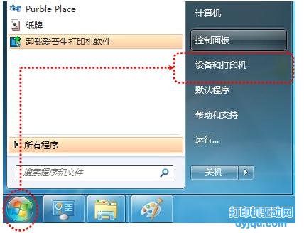 2.1 點(diǎn)擊“開始”→“設(shè)備和打印機(jī)”,如圖(5);