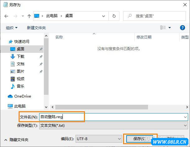 記事本點(diǎn) 文件 -> 另存為 。在另存為對話框里,保存文件名:自動(dòng)登陸.reg #注意一定要輸入.reg #.reg是注冊表文件 然后點(diǎn) 保存