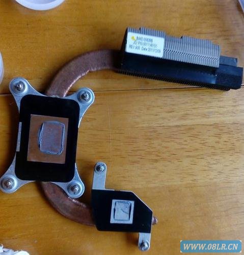 最后就剩下散熱器了.幾個螺絲取下就行了,拿下后清理一下散熱孔的灰塵.一年多的時間,原先的硅脂差不多干掉了. 紙巾擦干凈后重涂新硅脂.再裝回的時候,螺絲要逐個分幾次扭緊,不可一下扭到底.