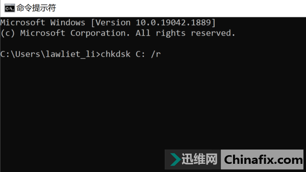 請務必注意,要使用命令提示符方法掃描的磁盤,都必須被磁盤檢查工具鎖定。如果此時打開了另一個文件,或磁盤檢查工具無法鎖定驅動器,系統(tǒng)會在下次重新啟動系統(tǒng)時,詢問是否要檢查驅動器。