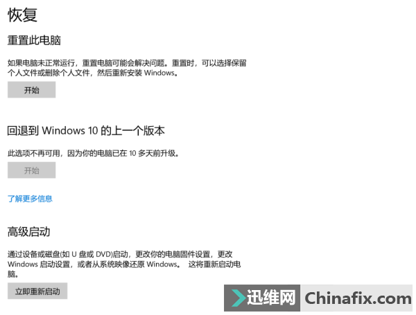 確保文件和工作都已保存,準備好后,再次點擊“立即重新啟動”。系統(tǒng)重啟后將出現恢復環(huán)境“選擇一個選項”屏幕。