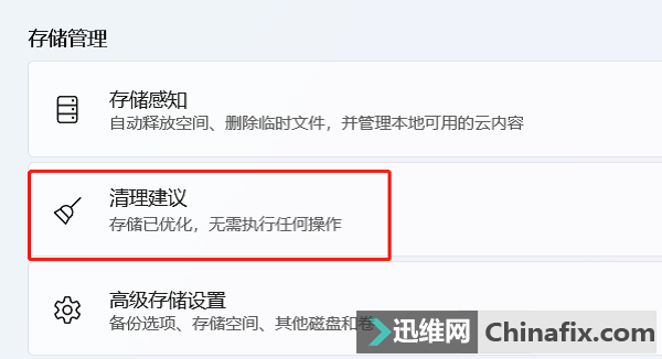 1、返回到存儲頁面,下滑能看見一欄是存儲管理,點擊【清理建議】。