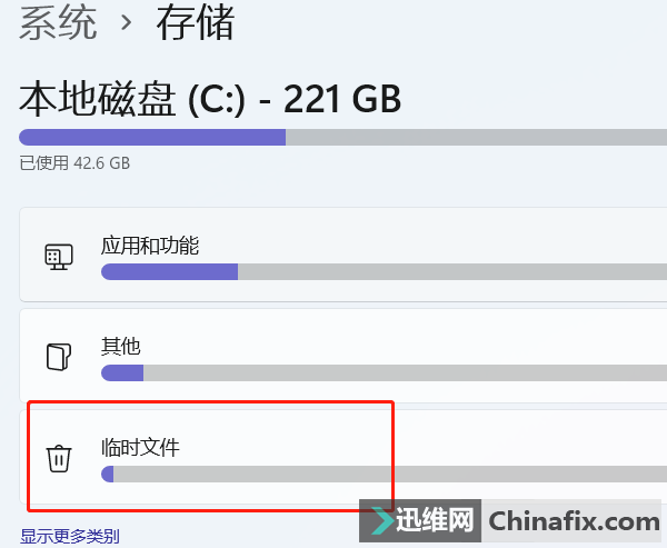 4、再打開列表中的【臨時文件】選項。