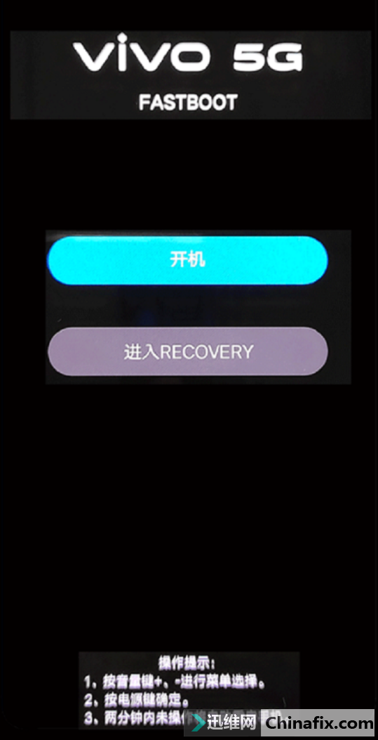 (1)按住電源鍵和音量上鍵,持續(xù)3~10秒,直到屏幕顯示“FASTBOOT”字樣后松開按鍵,按音量下鍵移動(dòng)光標(biāo)至【進(jìn)入RECOVERY】