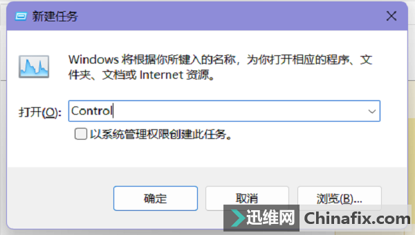 3、在新建任務(wù)窗口,輸入欄里輸入“Control”接著按下回車(chē)鍵或者點(diǎn)擊下方【確定】。