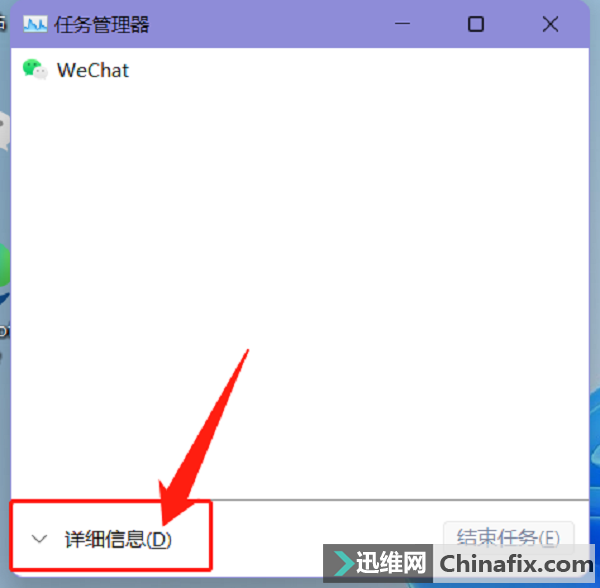 2、單擊任務(wù)管理器中的【詳細(xì)信息】選項(xiàng)切換到可以查看詳細(xì)列表。