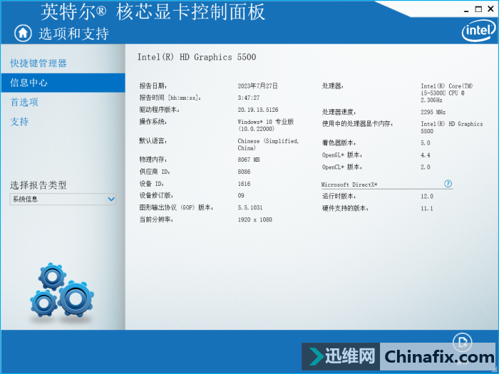 5、信息中心頁面就能查看我們的顯卡信息了。