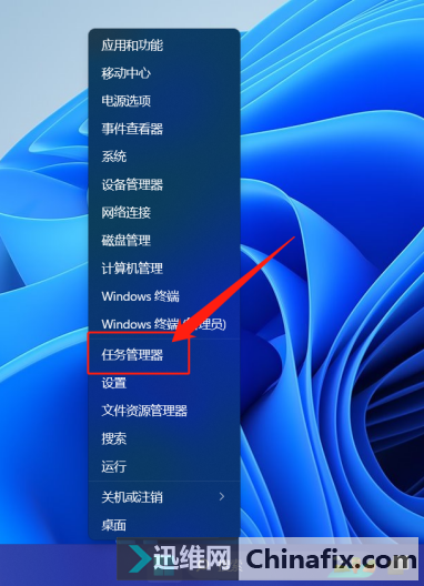 1、鼠標移動到任務欄Win圖標處,按下右鍵,在彈出的菜單窗口中點擊【任務管理器】。