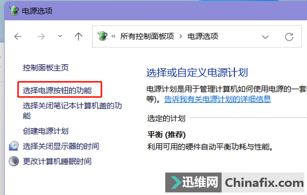 3、來到電源選項頁面后,點擊在側(cè)欄的【選擇電源按鈕的功能】 ;