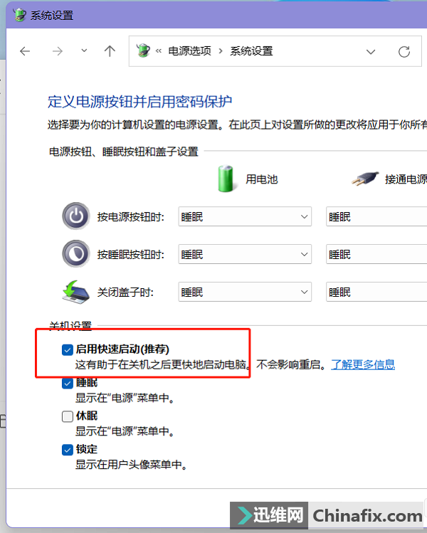 5、就能看見畫面中出現(xiàn)【使用快速啟動】選項,我們在后面取消勾選即可。