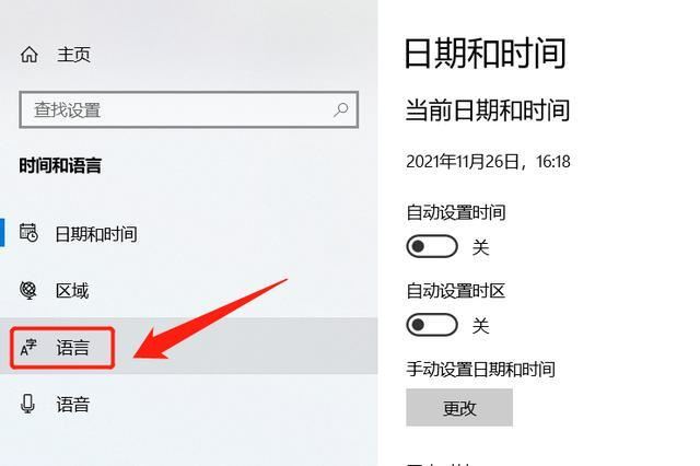 3.點(diǎn)擊進(jìn)入“時(shí)間和語言”選項(xiàng),在彈出界面的左側(cè),找到“語言”:
