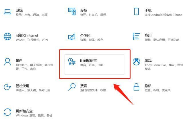 2.進(jìn)入系統(tǒng)“設(shè)置”選項(xiàng)后,在彈出的界面里找到“時(shí)間和語言”選項(xiàng):