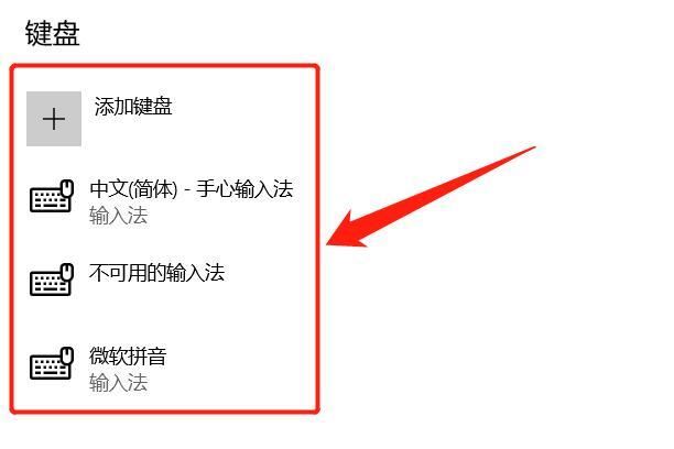 8.如果該選項(xiàng)內(nèi)只有“微軟輸入法”,那么就是輸入法丟失造成的,隨便下載一個(gè)輸入法,安裝完成后,點(diǎn)擊添加鍵盤,將輸入法添加進(jìn)來即可。