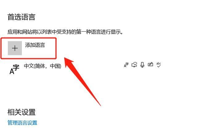 4.點(diǎn)擊“語言”選項(xiàng)后,在彈出的界面里找到“添加語言”選項(xiàng):