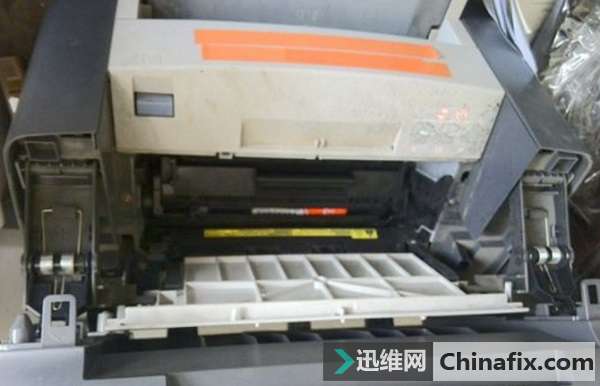 2、打開以后取出碳粉盒、看圖、就是打印機里面那個黑色的東西。