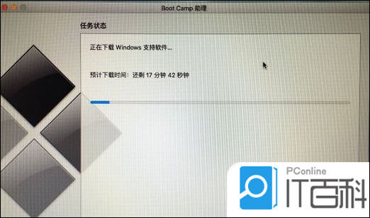 6. 這時候“Boot Camp助理”會下載windows支持軟件,執(zhí)行磁盤分區(qū)操作,預(yù)計時間可能15-20分鐘;