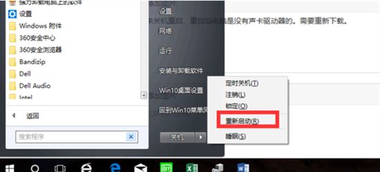 7、接下來(lái)關(guān)機(jī)重啟,重啟后電腦是沒(méi)有聲卡驅(qū)動(dòng)器的。需要重新下載。