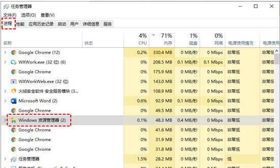 3、在“進程”選項卡中,找到“Windows資源管理器”,并單擊右下角的“重新啟動”按鈕。