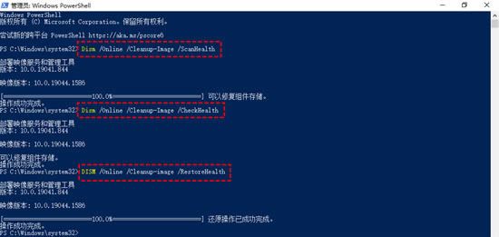 DISM /Online /Cleanup-image /RestoreHealth (將與官方系統(tǒng)源文件不同的進行還原)