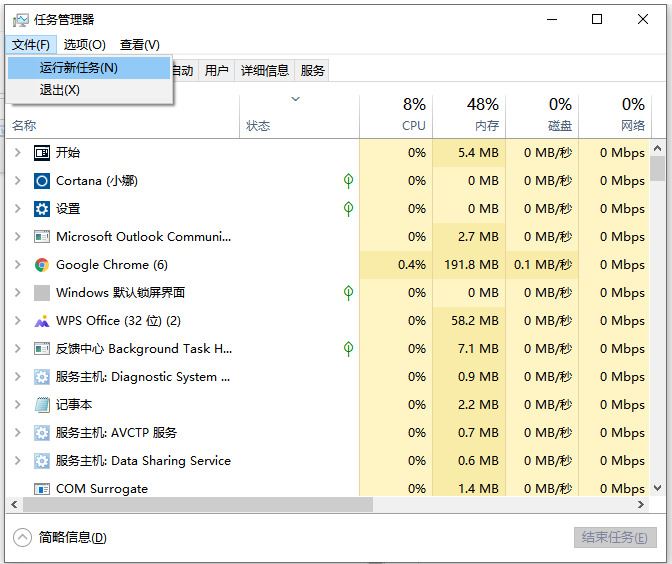 2、點擊左上角的“文件”,選擇“運行新任務(wù)”。
