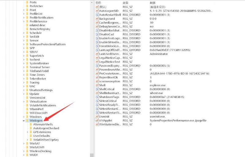 依次點擊展開HKEY_Local_MACHINE\Software\Microsoft\Windows NT\CurrentVersion\Winlogon