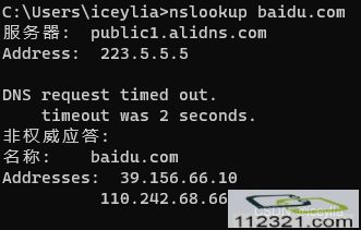 cmd輸入nslookup+任意域名 比如nslookup baidu.com